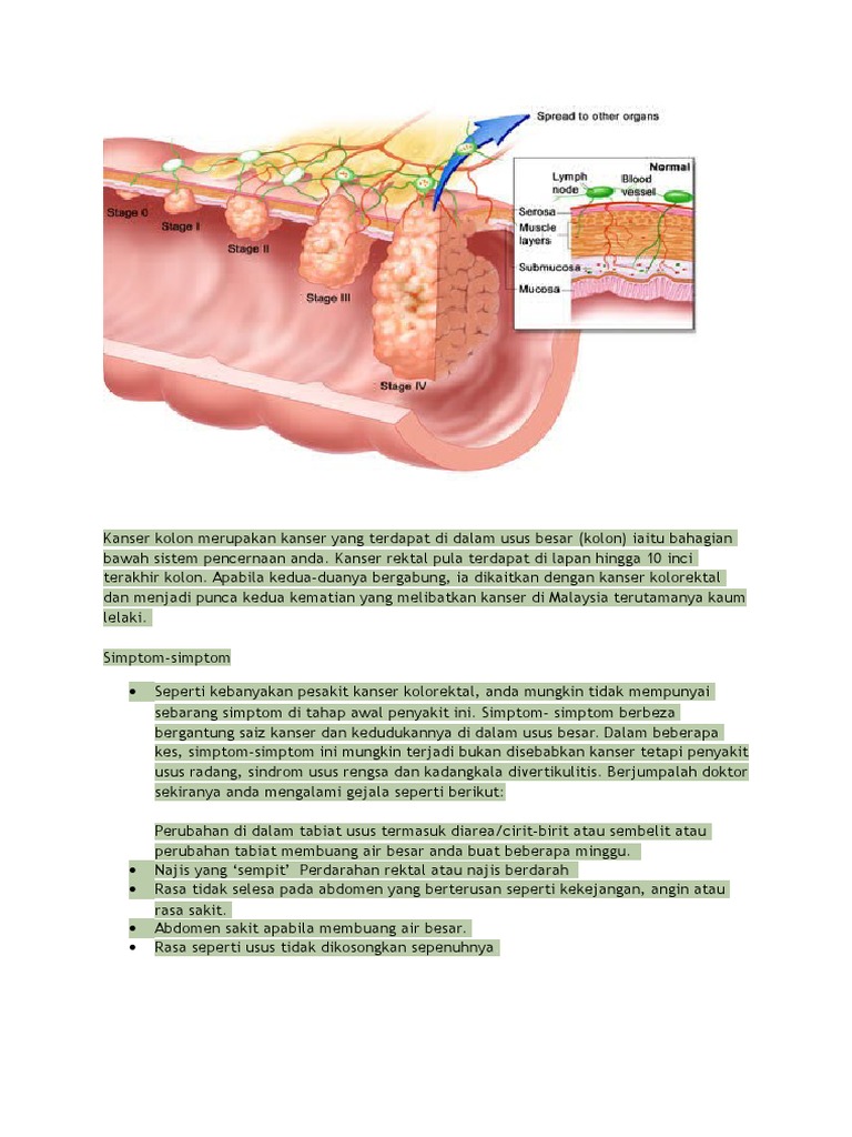 Sumber dari registri kanser kebangsaan. Kanser usus atau dikenali sebagai kanser kolon adalah tumor malignan yang timbul daripada dinding dalam usus besar. Kombinasi skrining dan pencegahan penting dalam memerangi kanker usus besar dan kanker dubur. Liputan6.com, jakarta kanker usus besar merupakan kondisi ketika sel usus besar berkembang biak tak terkendali. Kanker usus besar adalah tergolong kanker yang ganas yang bisa mematikan bagi siapa saja yang mengidapnya.