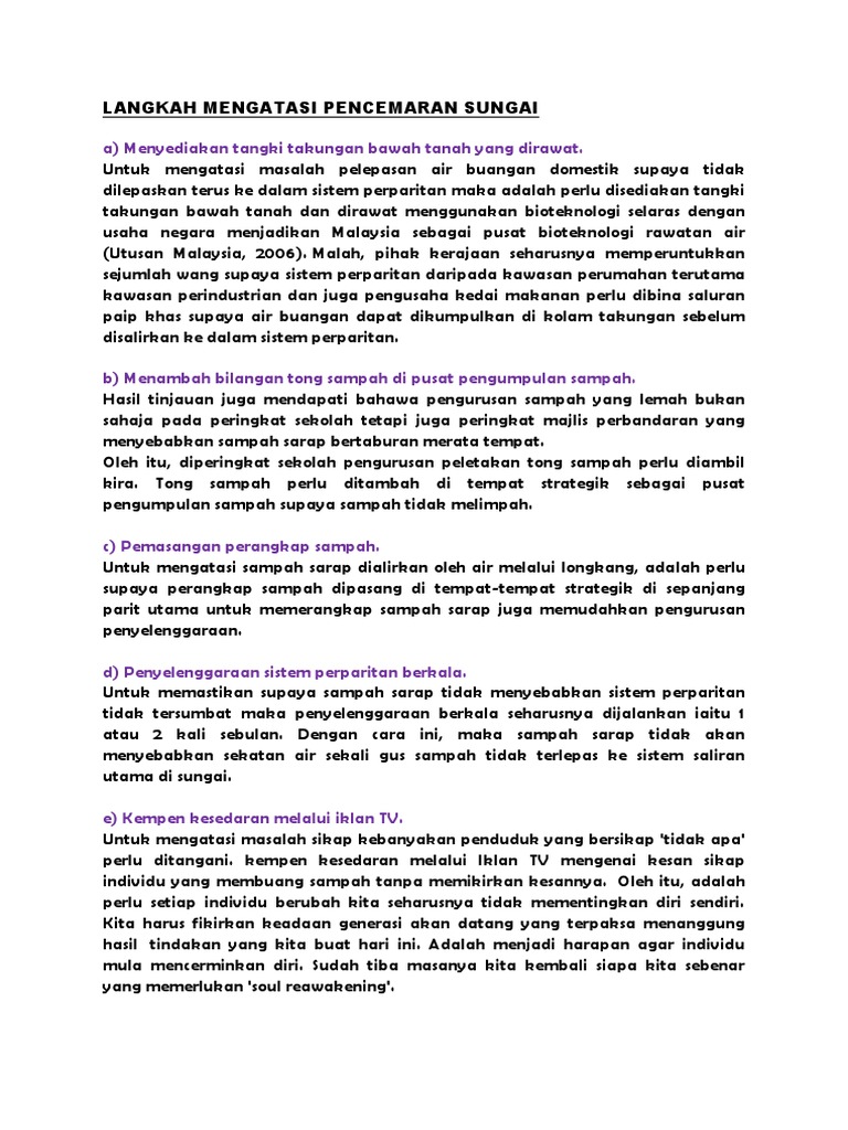 Related : Langkah Mengatasi Pencemaran Sungai - Penyebab Pencemaran Air dan Cara Mengatasinya Beserta Gambar : Boleh dapatkan maklumat untuk buat karangan..